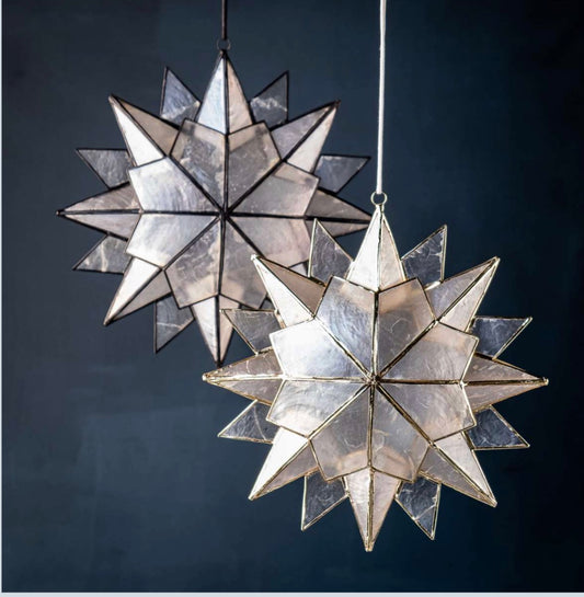 DIMAANO GRANDE Stern Schwarz Stern Klatt Objects aus Capiz Muschel in Tiffany Technik. Kordel aus gewachster Baumwolle. Farbe: schwarz elektroplattiert